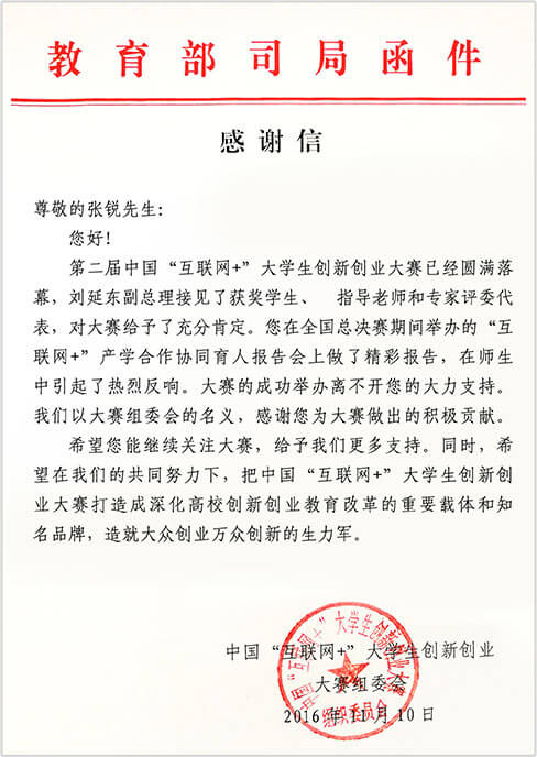 • 2018年,虎扑体育连续多年为中国国际互联网+大学生创新创业大赛做出积极贡献,获教育部来函致谢。